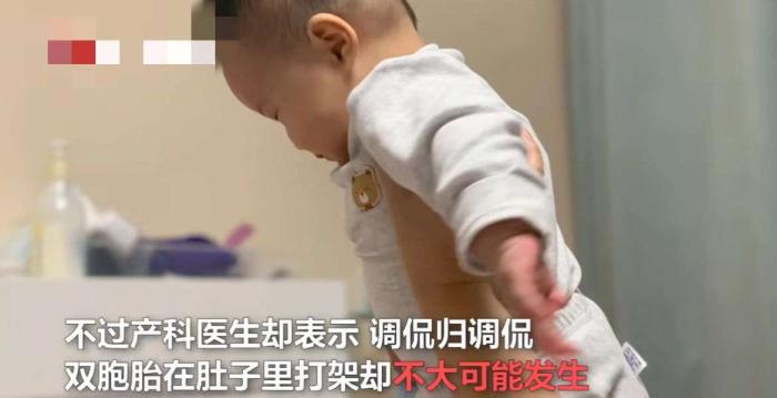 在“妇产科的陈大夫”看来,双胞胎在肚子里打架是个伪命题。她表示,胎儿并不能很好的控制他们的手脚。他们在子宫内做出的伸手踢腿都是无意识的行为,并非是在打架。胎儿的手脚也没有成人那么强的力量,又有羊水作为缓冲。她说,“他们活动手脚时,其实并不能对对方产生实质性的伤害。”
