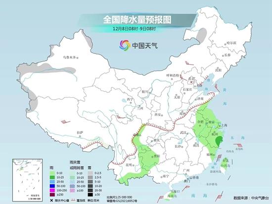 具体来看,今天,新疆北疆北部和南疆西部山区、西藏东南部等地部分地区有小雪或雨夹雪。安徽中南部、江苏中南部、浙江、福建大部、四川盆地西部、贵州中西部、云南东部和南部、海南岛中部、台湾岛等地部分地区有小雨。