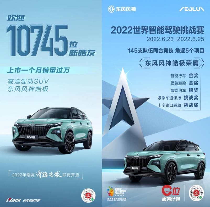 在2022年的世界智能驾驶挑战赛上,13万级混动SUV皓极凭借准L3级智能驾驶辅助系统,斩获2金、1银、2挑战奖的佳绩。同时在2022中国汽车安全大会上东风风神皓极获得了全体评委、广大“皓友”一致认可、好评,斩获“2022中国十佳车身”及“最佳低碳奖”两项专业大奖。