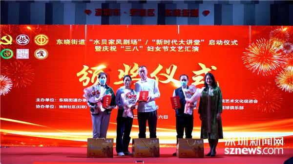 读特客户端·深圳新闻网2023年3月9日讯(记者 郭含笑 实习生 叶佩珊 通讯员 蔡欢 黄利生 陈颖)3月6日晚,东晓街道举办户外“新时代大讲堂”“水贝家风剧场”启动仪式暨“三八”妇女节庆祝活动。