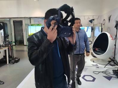 VR技术体验冰雪大世界全景。(哈尔滨展馆及参展商供图)