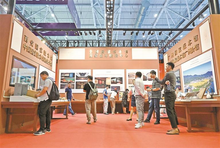 中国国家版本馆国家版本数据中心带来丰富的文创产品,吸引众多观众驻足。 深圳特区报记者 耿超逸 摄