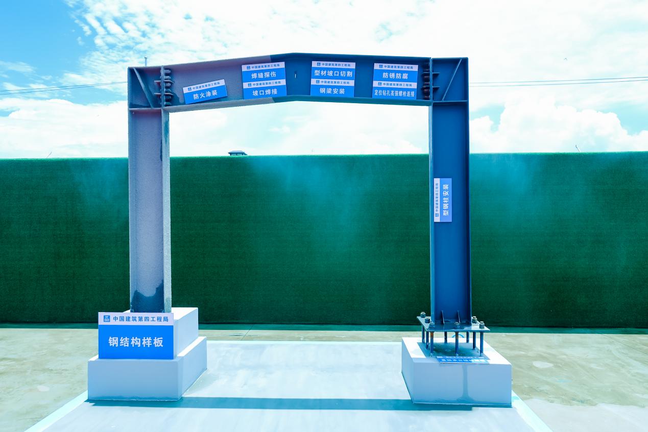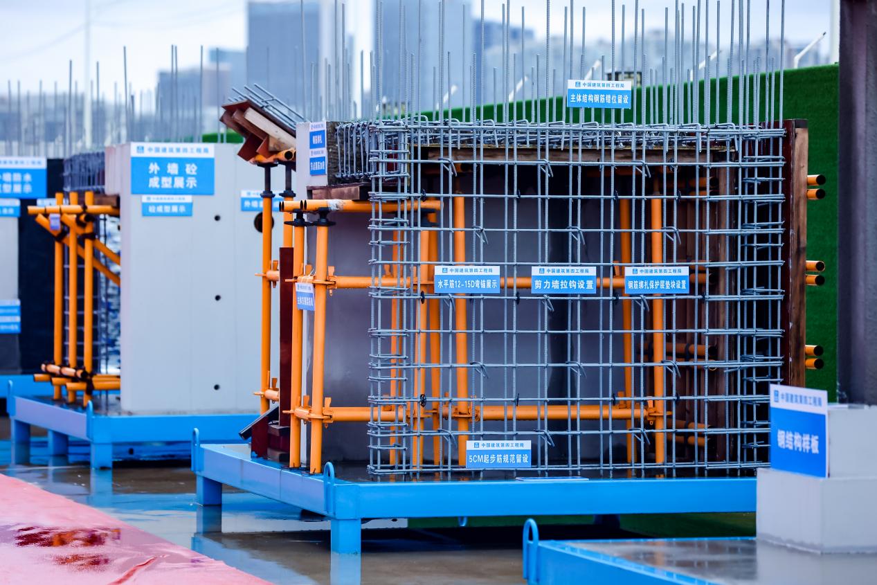 活动现场,与会代表们依次前往项目的质量样板展示区、安全教育体验馆、应急救援展示区、绿色智慧展厅等观看智慧工地应用实例。记者看到,质量样板展示区展示了桩基础样板、钢结构样板、主体结构及砌体结构样板等不同类型样板,并将不同应用技术清晰标记。如在钢结构样板区,框架柱采用型钢与混凝土组合形式形成 SRC 柱、柱脚底部采用预埋螺栓的形式,梁柱连接处采用高强螺栓进行连接等技术清晰明了,直观反映质量样板的安全性、品质性。