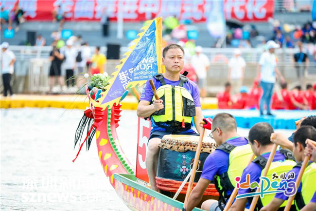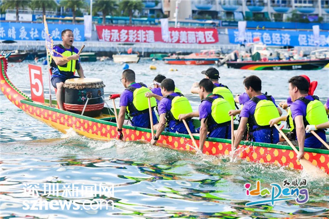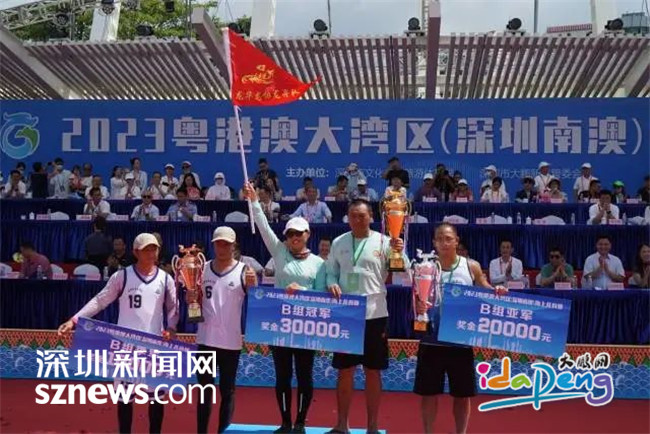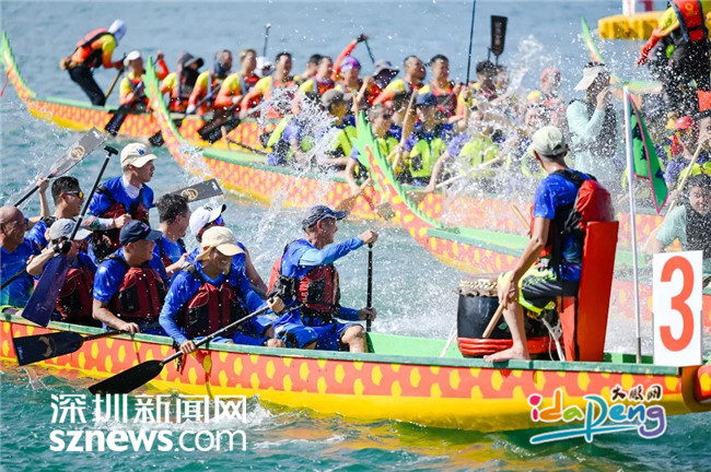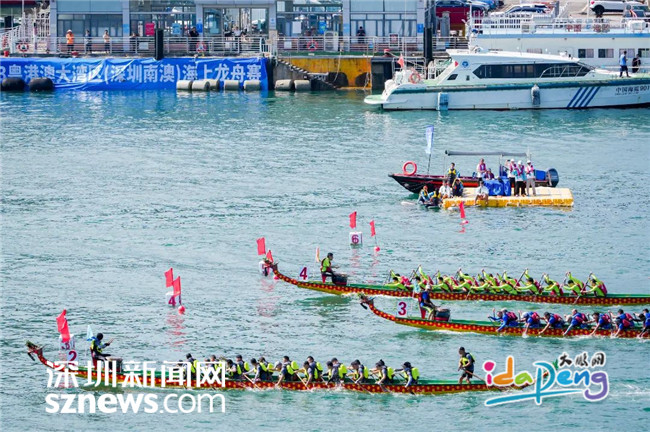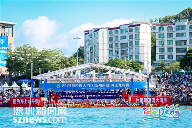 深圳新闻网2023年6月20日讯(记者 周维朕 谢雨婷 林宏松)锣鼓喧天,旌旗飘扬,桨叶飞舞,浪花翻腾。6月20日,2023粤港澳大湾区(深圳南澳)海上龙舟赛如约而至!本次来自大湾区11个城市的29支队伍将分为两组进行500米直道竞速,海上龙舟赛首日有18支队伍出战。经过激烈的角逐,最终由深圳龙华龙舟队获得B组第一名,东莞中堂龙舟队获得B组第二名,深圳东渔龙舟队获得B组第三名。