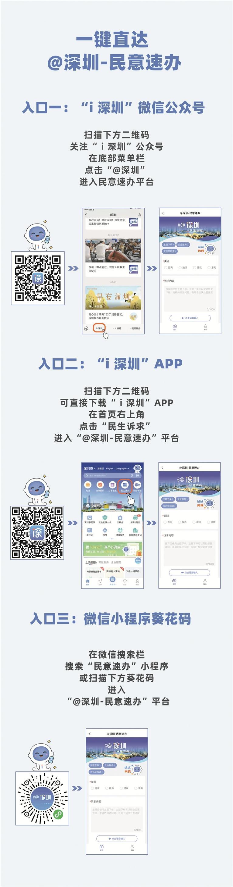 扫描二维码 一键直达 “@深圳-民意速办”