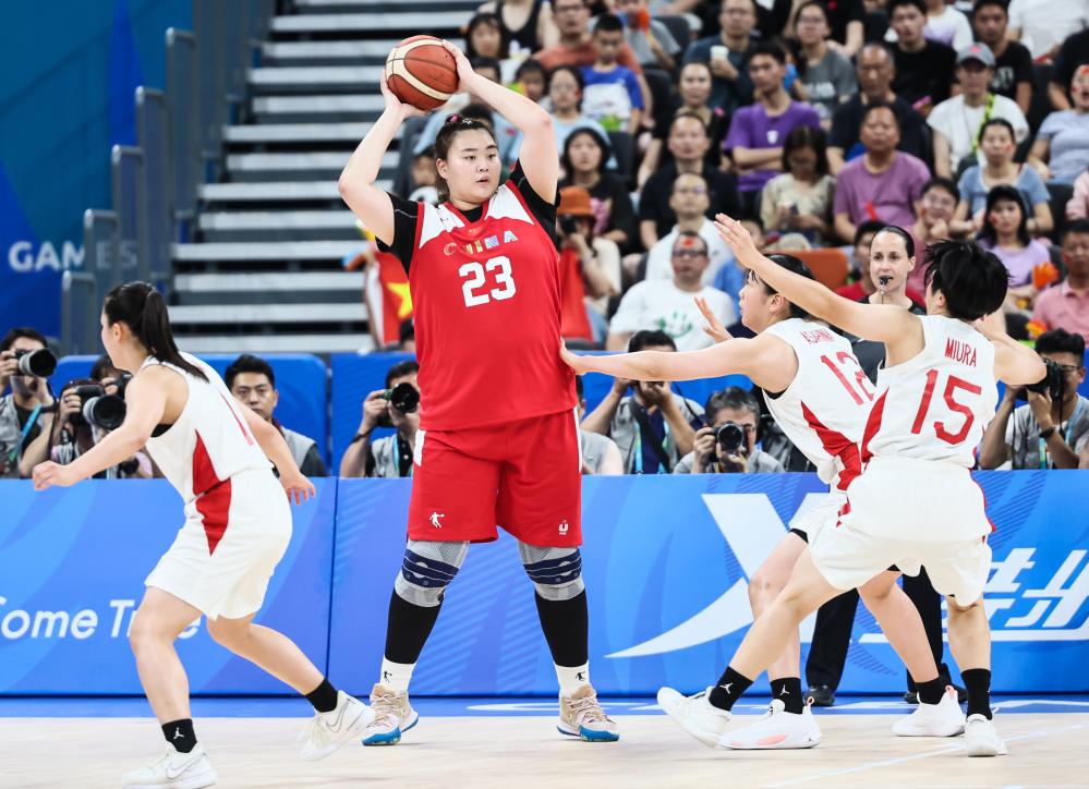 因为霸气沉稳的球风、阳光开朗的性格,来自北京师范大学、身披23号球衣的中国大运会女子篮球队队员刘禹彤被球迷亲切地称为“大宝贝”。在女篮决赛中,她在第二节尾声日本队将比分追至44:45时,挺身而出,在篮下4投4中连得8分帮中国队稳住阵脚。场上威震内线,场下的刘禹彤在比赛开始前会跟着拉拉队员一起手舞足蹈,尽显可爱。