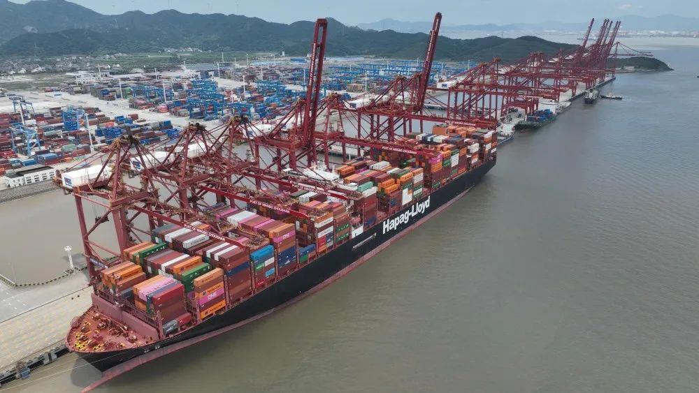 △宁波舟山港。今年上半年,我国电动汽车、锂电池、太阳能电池这外贸“新三样”走俏海外,出口表现十分亮眼。