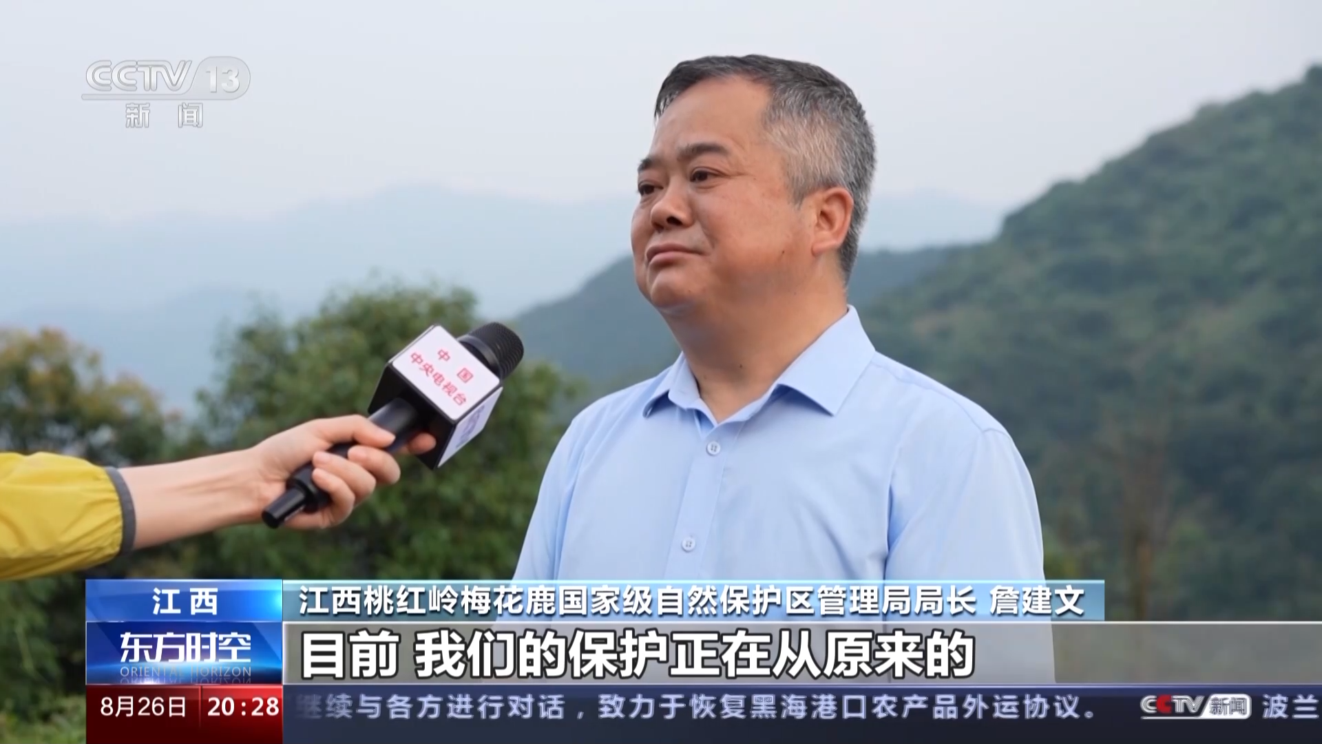 江西桃红岭梅花鹿国家级自然保护区管理局局长 詹建文:目前,我们的保护正在从原来的抢救性保护向研究型保护过渡,不再以梅花鹿种群的数量增长作为唯一目标,而是把梅花鹿种群的健康稳定可持续发展放在首位,真正做到尊重自然、顺应自然、保护自然。