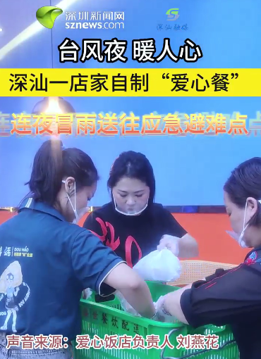 9月1日22:00,深汕特别合作区一饭店自制“爱心餐”,给奋战在一线守护市民安全的工作人员准备了炒米粉、煎饺、皮蛋瘦肉粥等连夜冒雨送往应急避难点。