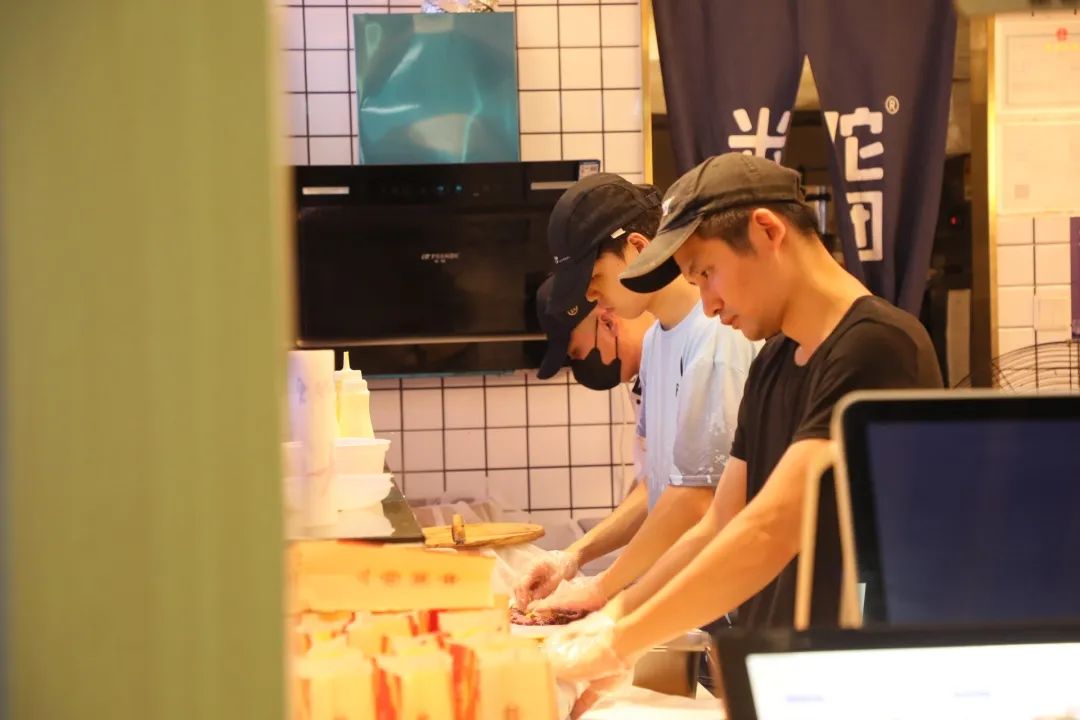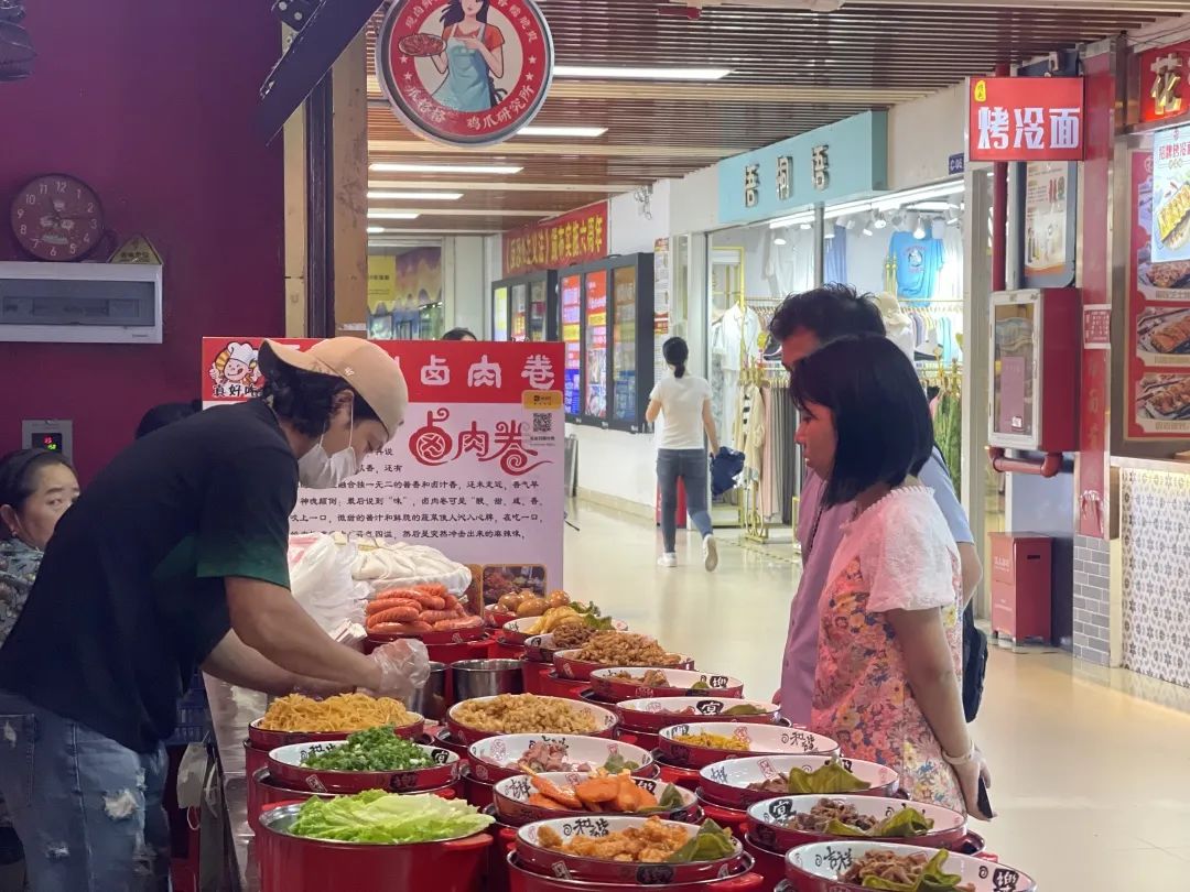 地铁站地下商场餐饮店、便利店陆续开始营业。11点23分,不少店员还在备餐、上架货物。(记者 谢莹)