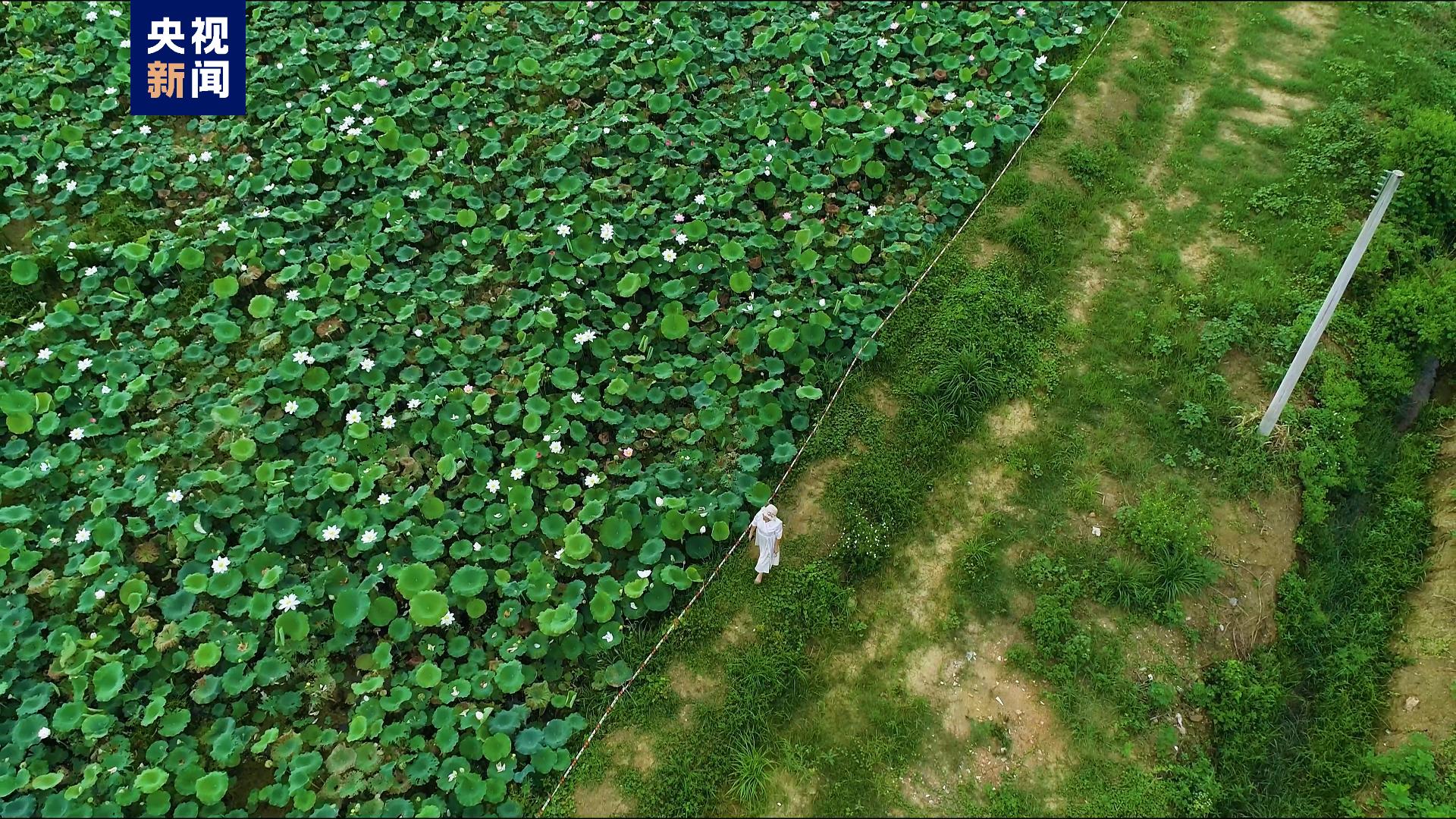 在韶关浈江区的黄塘村和群丰村,新修建的垦造水田阡陌纵横、绿浪涟漪,稻田另一边是连片的荷塘,荷叶翩跹,荷花亭亭玉立,与茁壮生长的水稻相映成趣。