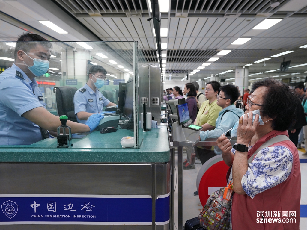 深圳湾边检民警高效查验出入境旅客。 (郑增浩 摄 )