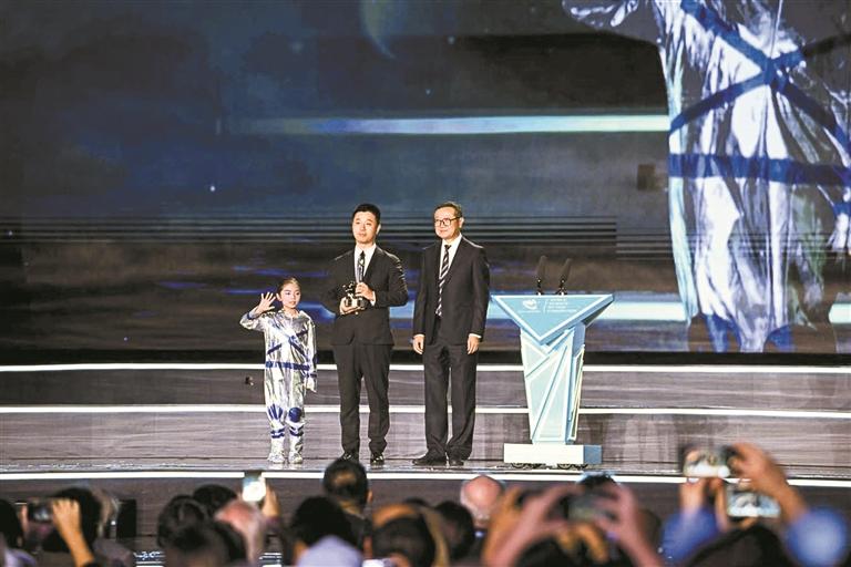 当晚,现场将这项荣誉颁发给海漄的,正是2015年凭借《三体》获得“最佳长篇小说”的中国首位雨果奖得主刘慈欣。