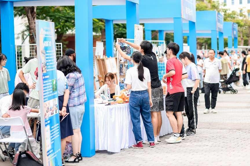 在“古榕艺墟”活动中,南方科技大学、东莞理工学院、广州城市理工学院等院校带来特色展位,展示了民艺、香艺、诗乐、文创、工艺品等传统技艺、“潮品奇货”与学校特色美育成果,吸引了大批师生观众驻足感受体验。