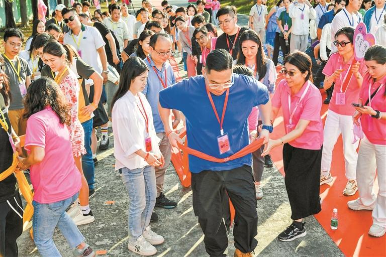 深圳新闻网2023年11月13日讯(深圳商报记者 吴维 文/图)11月12日,一场浪漫的“心心相印”联谊活动在深圳Let's Green织染印游城甜蜜上演。60对共120位两岸青年在趣味游戏中共度美好时光,现场洋溢着各种甜蜜温馨的气息。