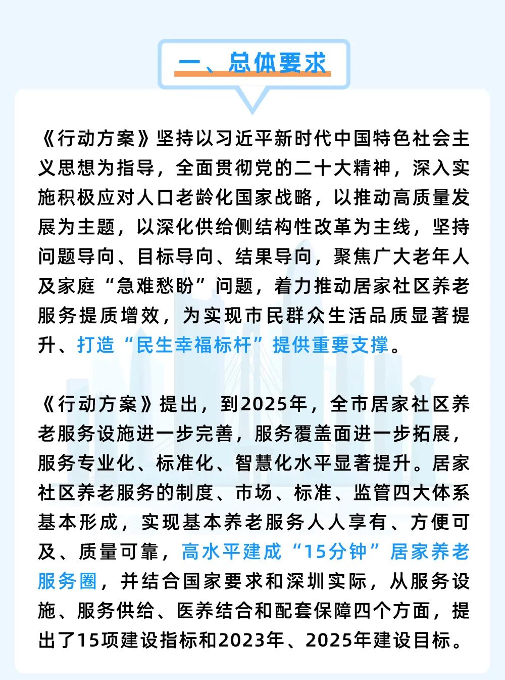 ● 近日,深圳市民政局印发《深圳市深入推进老有颐养“907”幸福康养惠民工程 健全完善居家和社区养老服务体系行动方案(2023—2025年)》。