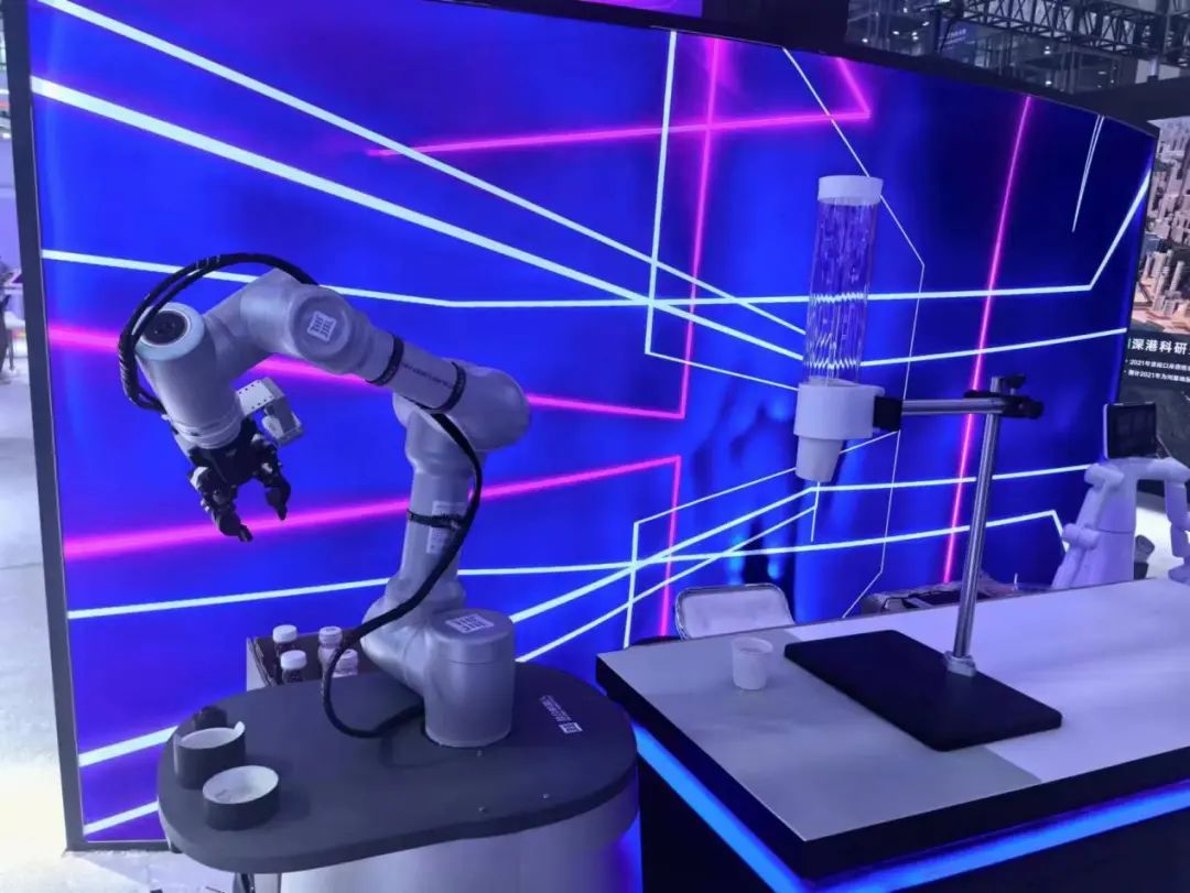 其中盈合的多功能服务机器人,这是一款通用型智能复合机器人,具有眼手脚脑协调功能,特别值得一提的是,该机器人能精准拧开矿泉水瓶、执行倒水等服务。