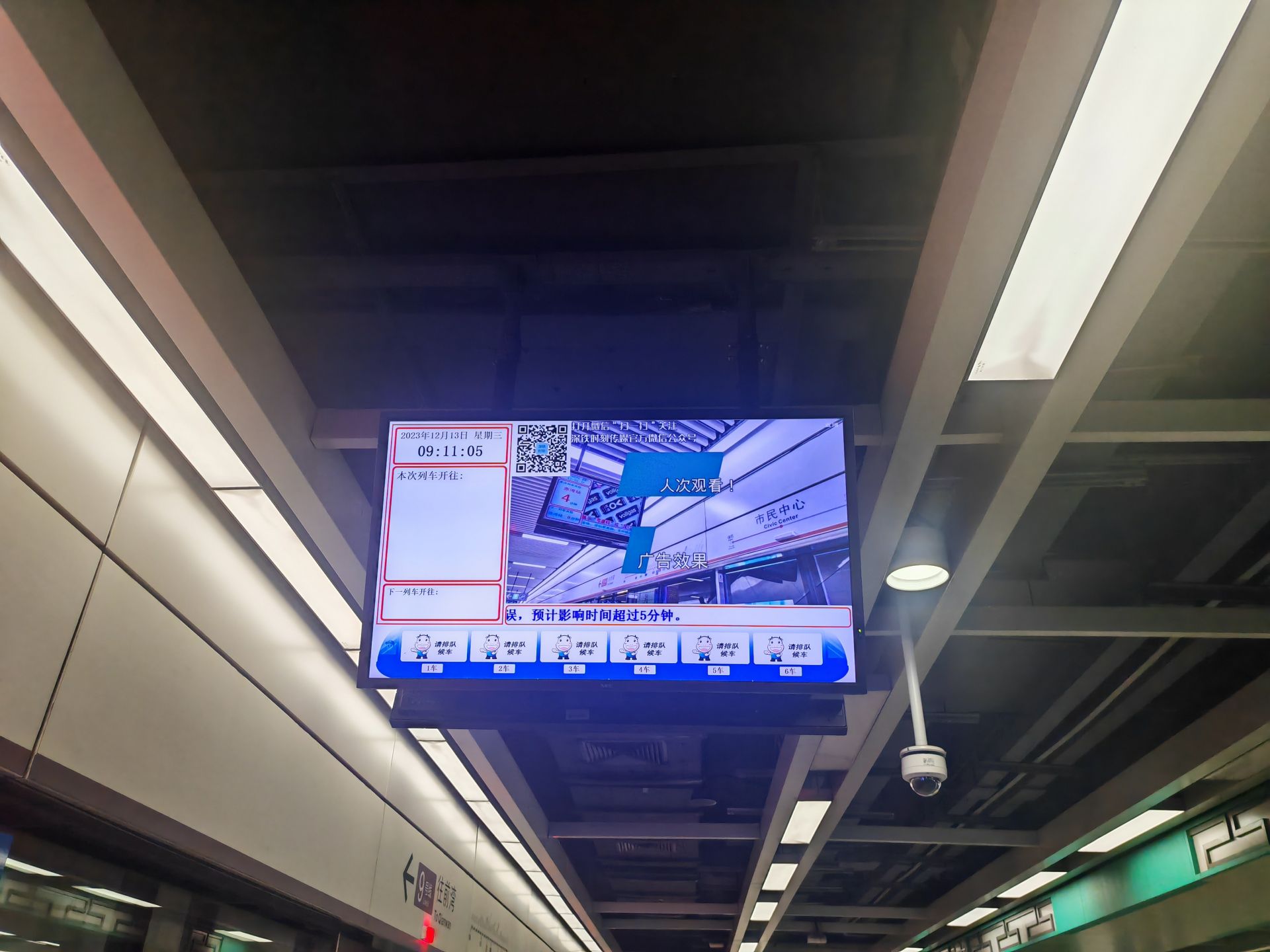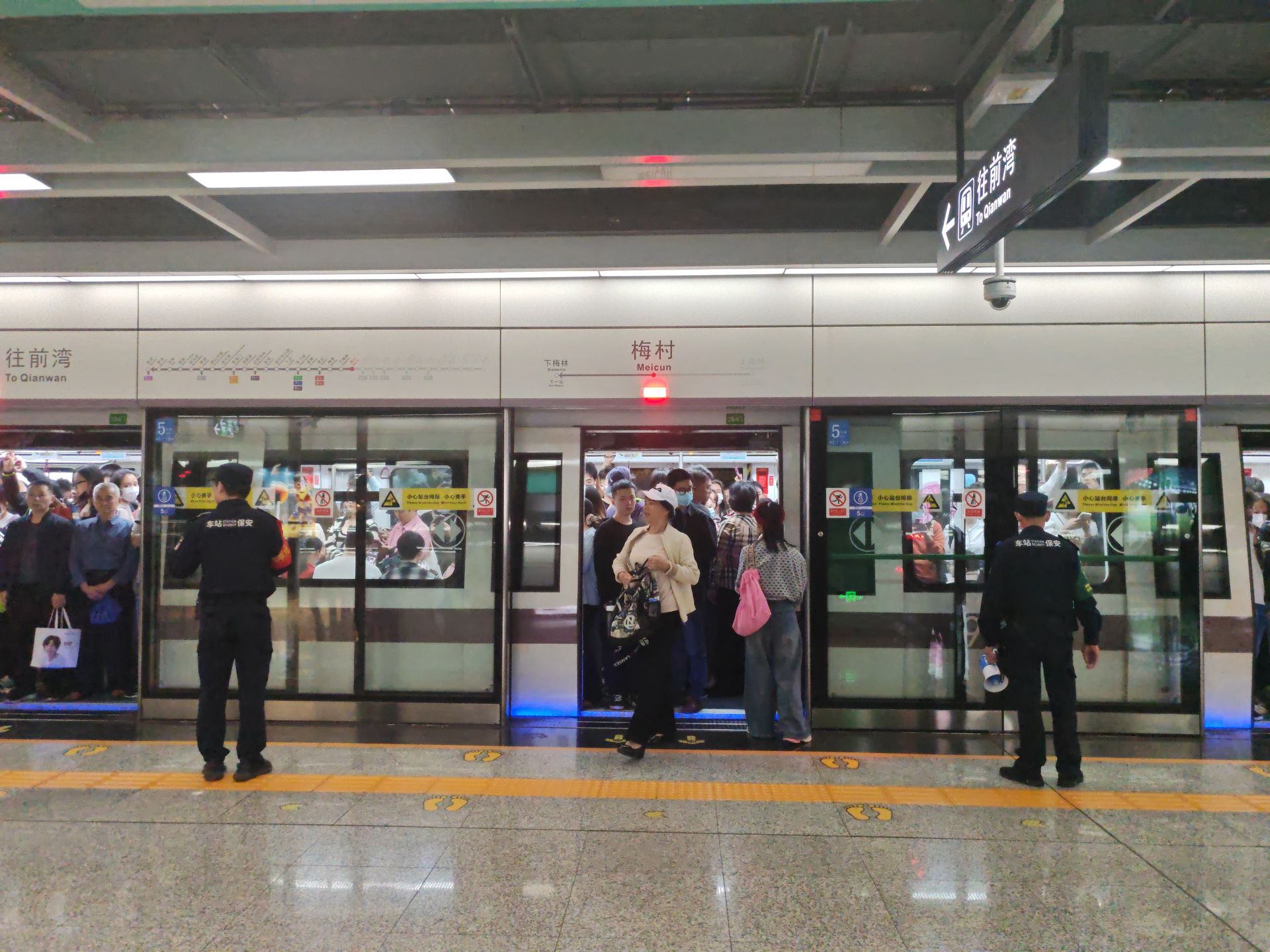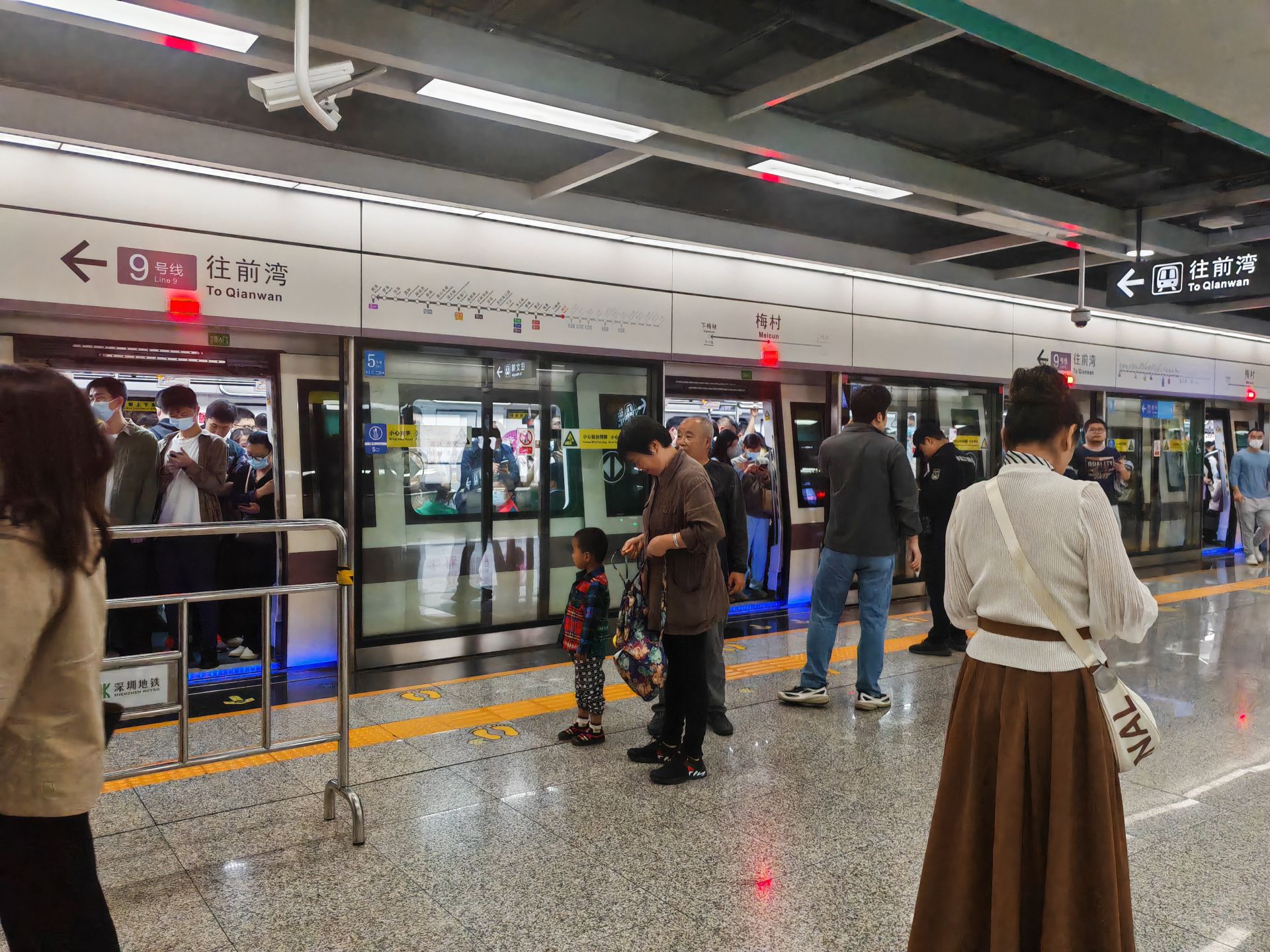 地铁车站的广播中循环提醒乘客,9号线开往文锦方向和前湾方向的列车,双向均因故延误,有需要的乘客,请改乘其他交通工具,所持车票可在5日内到任意车站办理票务手续。