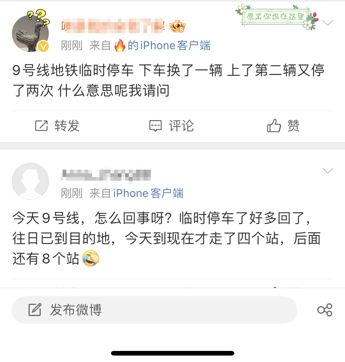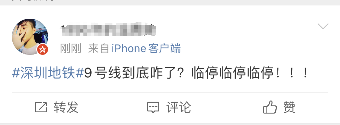 今天(12月13日)早上,据网友爆料,深圳地铁9号线部分区段频繁发生临停现象,“换了一辆车第二辆又停两次”。
