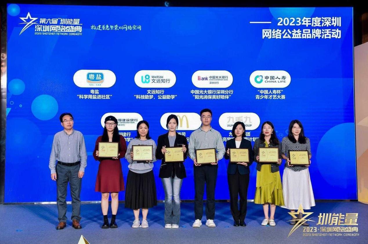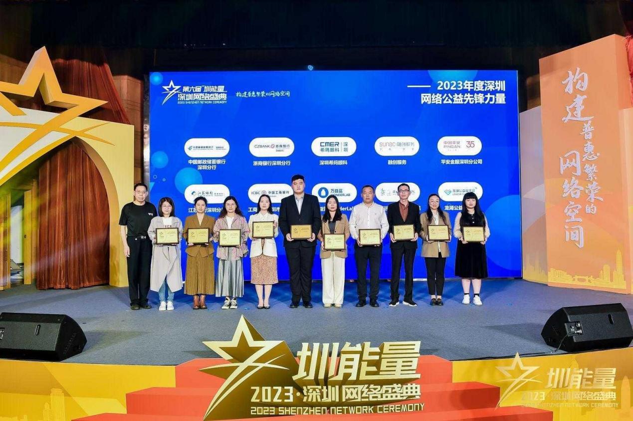 经过专家组评选,考量社会公益成效后,中国邮政储蓄银行股份有限公司深圳分行、深圳希玛林顺潮眼科医院、融创物业服务集团有限公司深圳分公司、龙湖公益基金会等10家企业(机构)荣获“2023年度深圳网络公益先锋力量”称号。