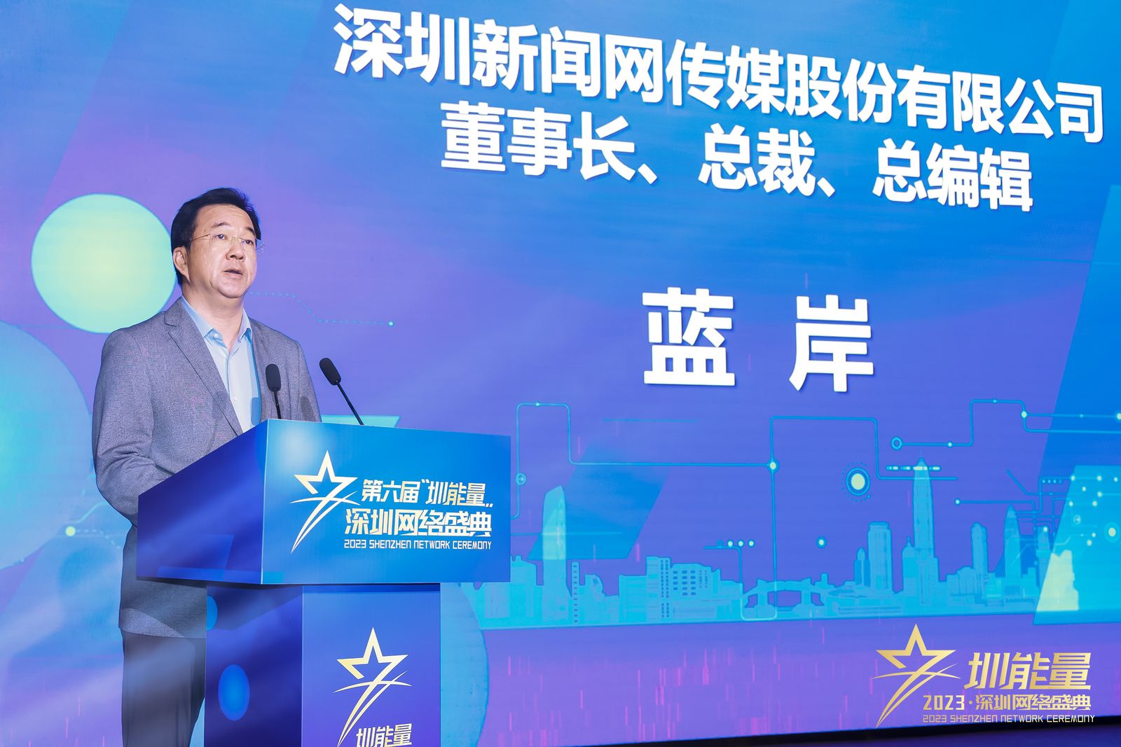 图:深圳新闻网传媒股份有限公司董事长、总裁、总编辑蓝岸致辞