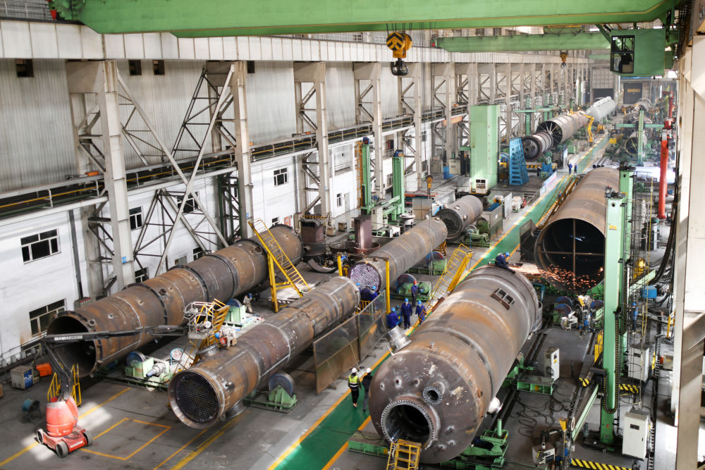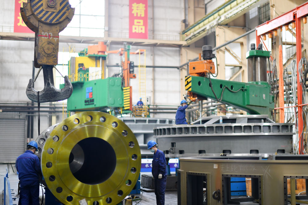 工人在哈电集团哈尔滨锅炉厂有限责任公司生产车间作业(2023年4月12日摄)。新华社记者 王建威 摄