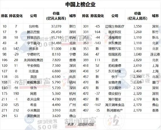 ● 1月31日,胡润研究院发布《2023胡润世界500强》。在上榜的33家中国企业中,有7家来自深圳,分别是:腾讯控股、平安保险、比亚迪、华为、迈瑞生物医疗、立讯精密、微众银行。