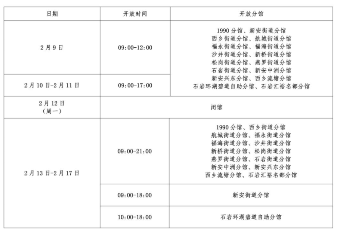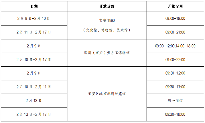 ● 宝安:春节期间,宝安这些场馆开放时间定了。
