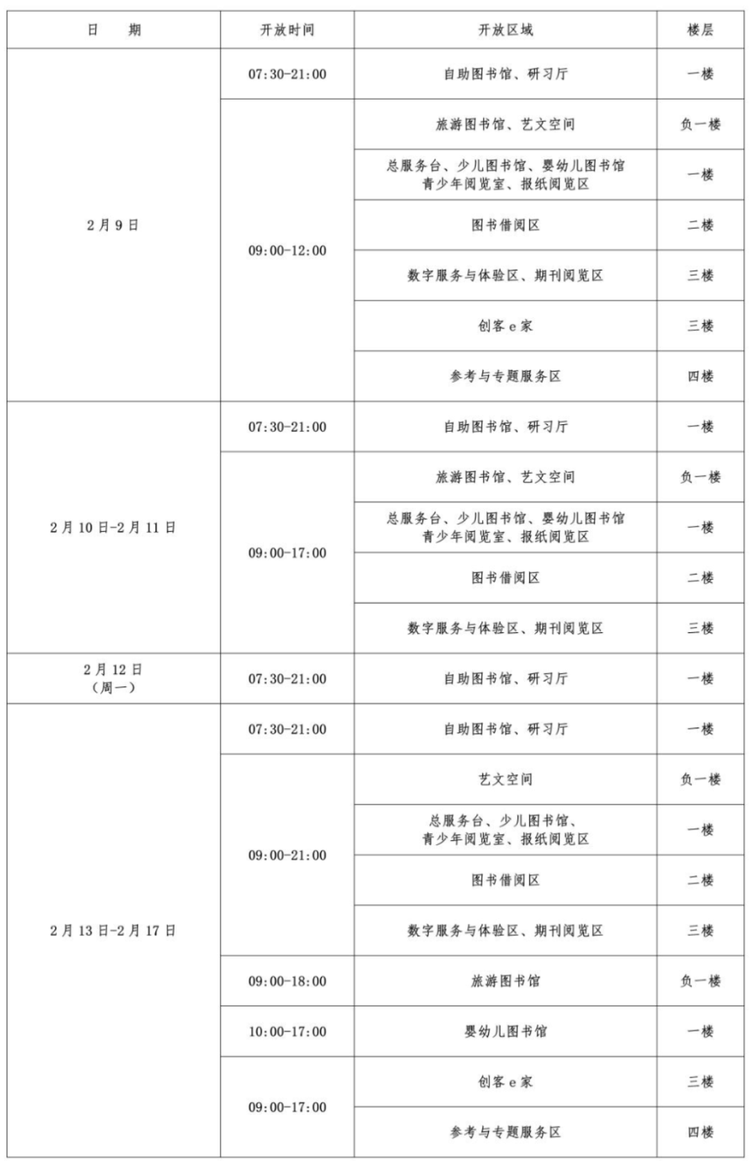 2月9日(除夕)正常开放。2月10日至2月17日(正月初一至初八)全天对公众开放,开闭馆时间9:00-16:30(停止入馆时间16:00)。