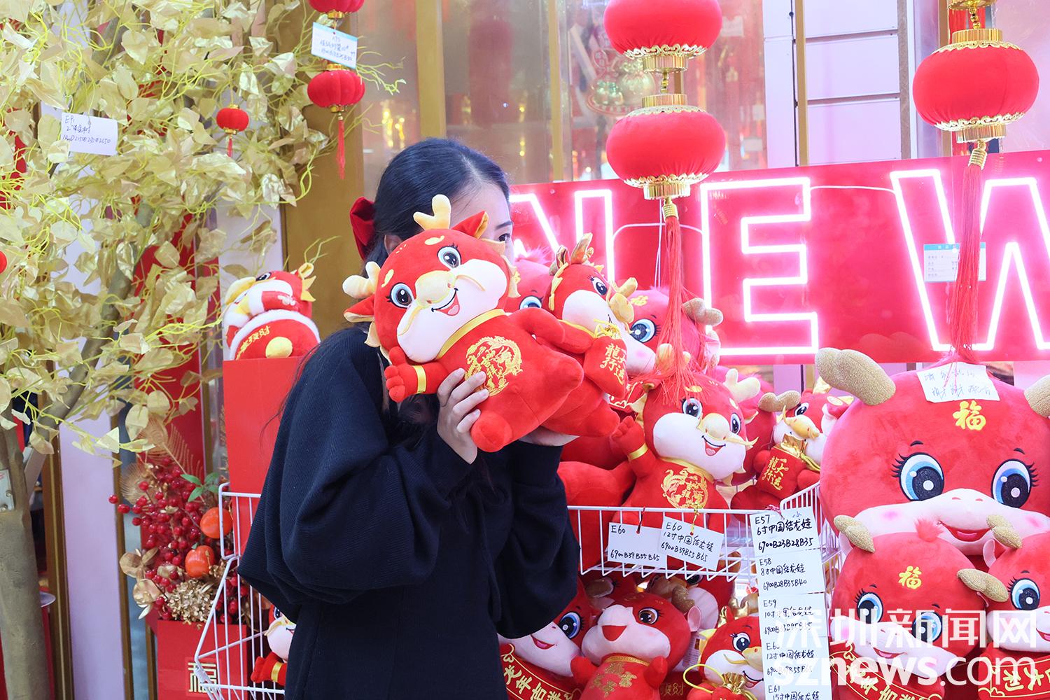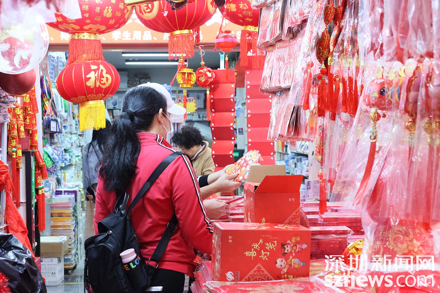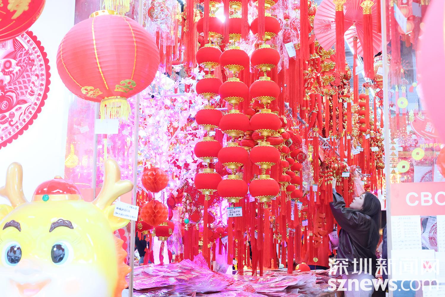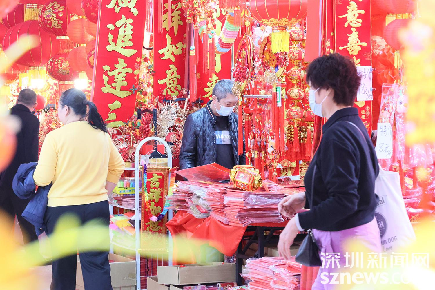 走进罗湖区笋岗文具玩具礼品批发市场,大红灯笼、红鞭炮串、中国结……卖年货的摊位前挂满各式各样寓意吉祥的挂件,吸引了不少市民驻足选购,洋溢着迎春接福的喜庆气氛和美好祈愿。