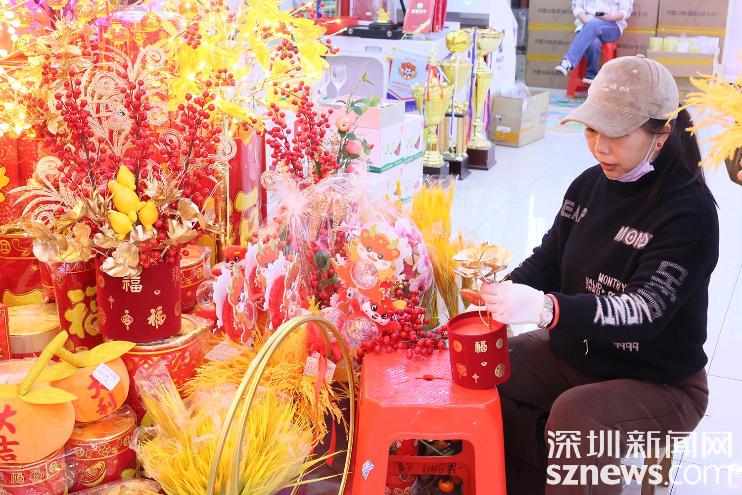 市民在笋岗文具玩具礼品批发市场里选购新春饰品。