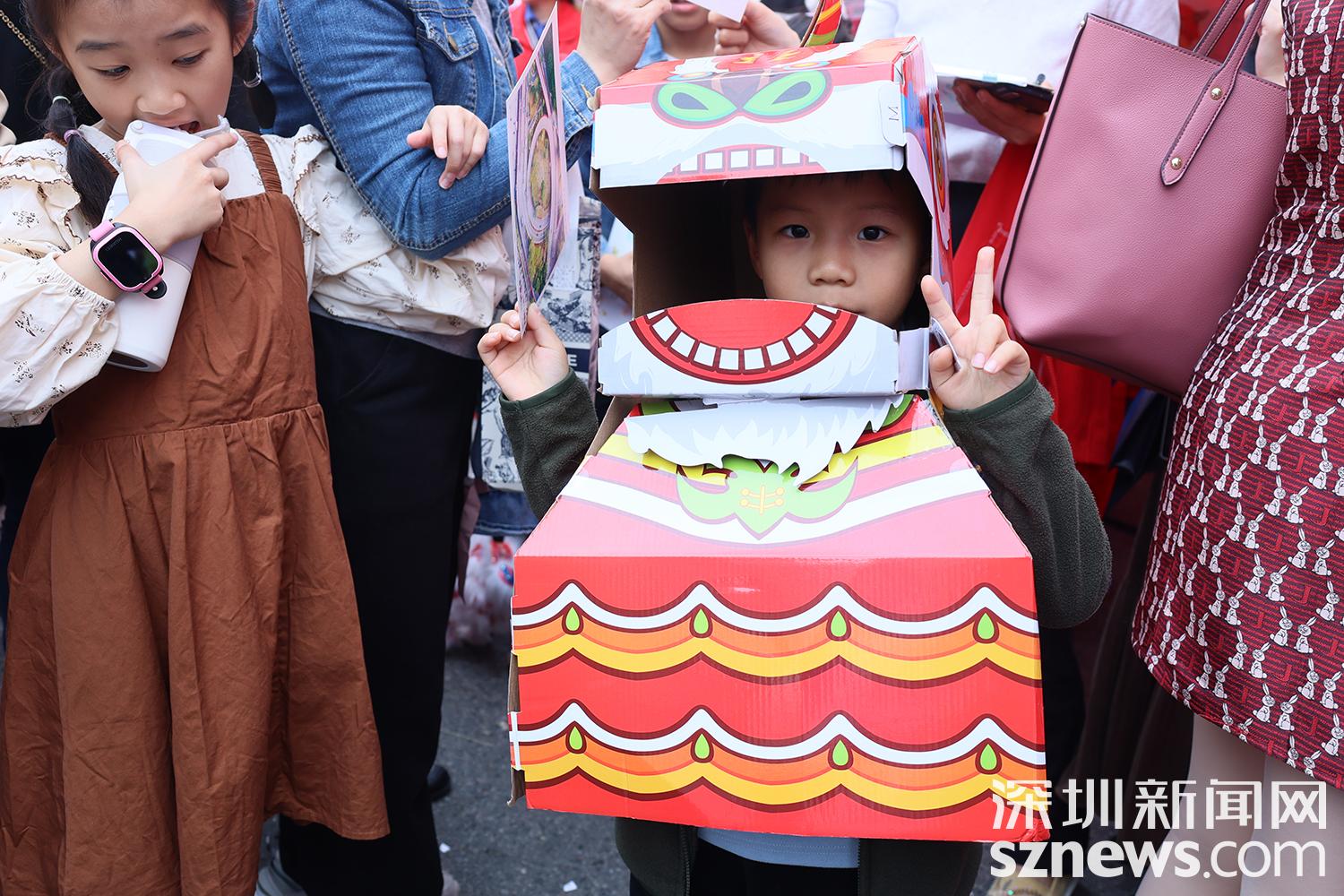 小朋友身穿手工牌的“小龙人”来到花市打卡。