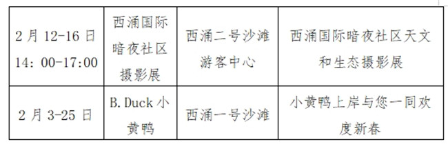 其他:活动免费,只需购买沙滩门票(单次15元/人,一天多次20元/人)。春节期间周边各酒店民宿正常营业,西贡、沙岗、鹤薮、芽山等居民小组均有餐饮食肆正常营业。