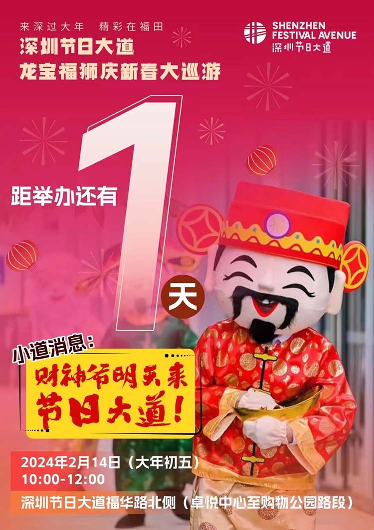 深圳新闻网2024年2月13日讯(记者 朱佳若)大年初五2月14日上午10点,深圳节日大道即将举办“来深过大年,精彩在福田”龙宝福狮庆新春大巡游。