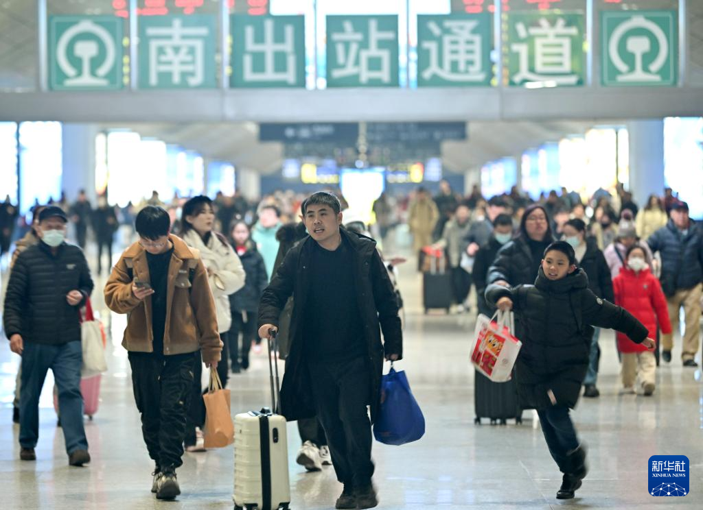 2月17日,旅客从天津西站南出站通道出站。新华社记者 李然 摄
