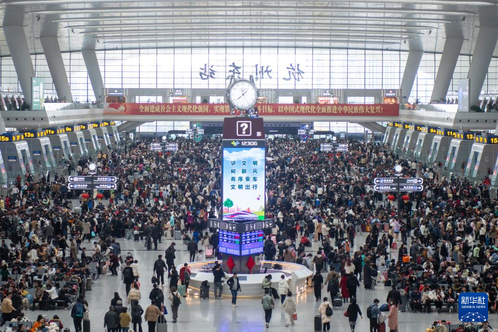 这是2月17日拍摄的杭州东站候车大厅。新华社记者 江汉 摄