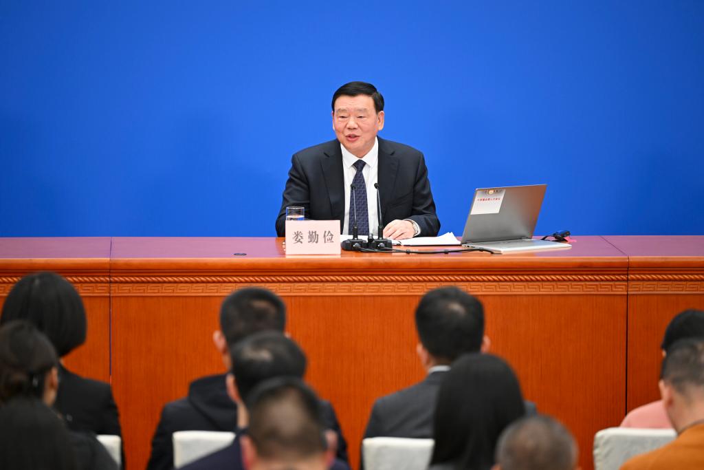 3月4日,十四届全国人大二次会议在北京人民大会堂举行新闻发布会。大会发言人娄勤俭就大会议程和人大工作相关问题回答中外记者的提问。