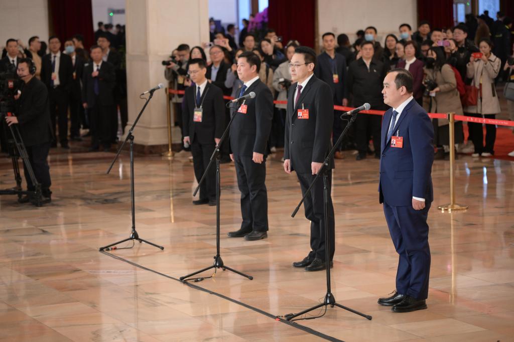 3月4日,全国政协十四届二次会议首场“委员通道”集体采访活动在北京人民大会堂举行。