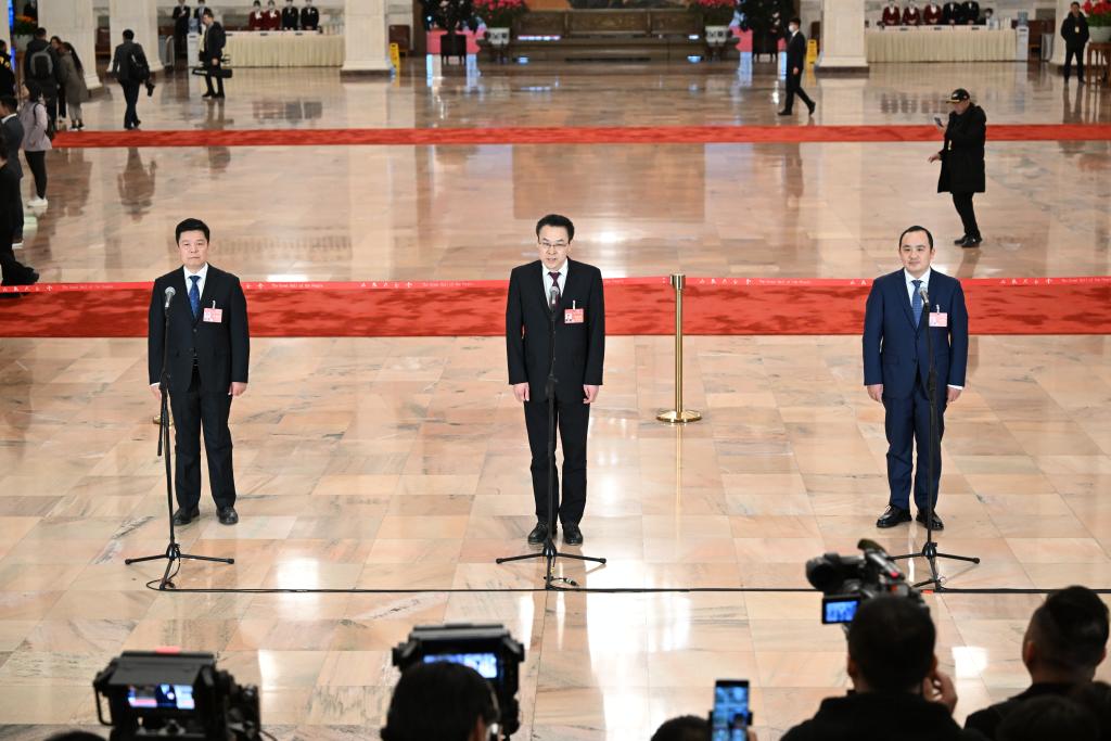 3月4日,全国政协十四届二次会议首场“委员通道”集体采访活动在北京人民大会堂举行。
