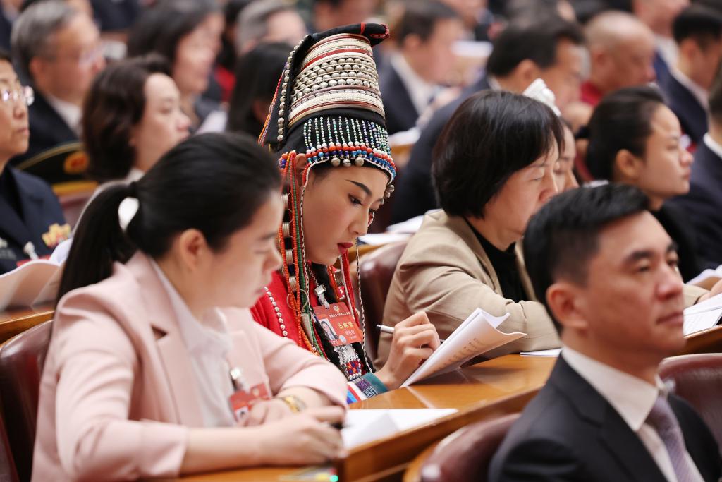 3月7日,全国政协十四届二次会议在北京人民大会堂举行第二次全体会议。这是委员们在认真听会。