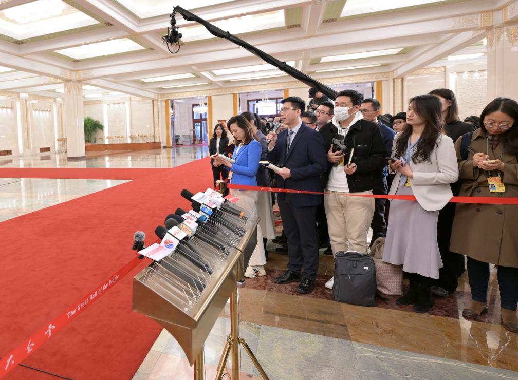3月11日,第十四届全国人民代表大会第二次会议第三场“部长通道”集中采访活动在北京人民大会堂举行。这是记者在现场提问。