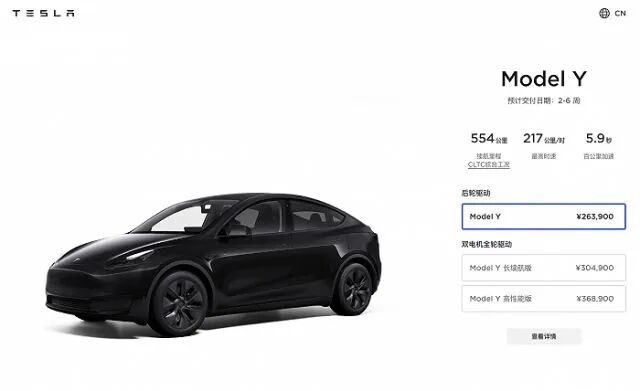 ● 特斯拉中国官网显示,Model Y售价上调至263,900元,Model Y长续航版售价上调至304,900元,Model Y高性能版售价上调至368,900元,涨价幅度均为5000元。