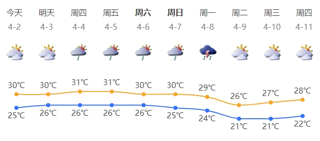 深圳今日多云间阴天,偶有分散阵雨;气温25-30℃;南风4级,沿海、高地和海区阵风6-7级;相对湿度70%-95%。