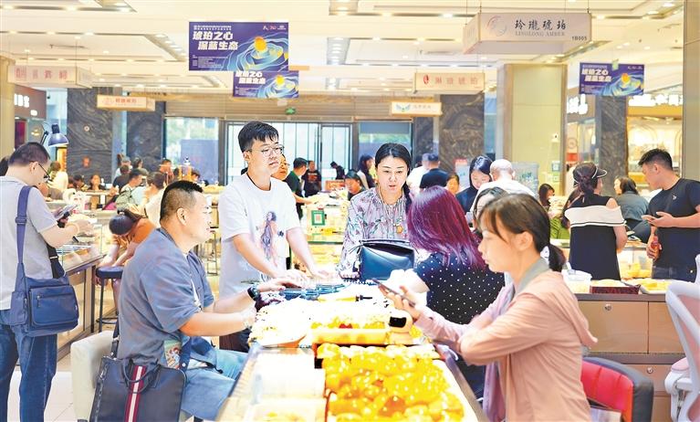 图为市民在选购琥珀产品。