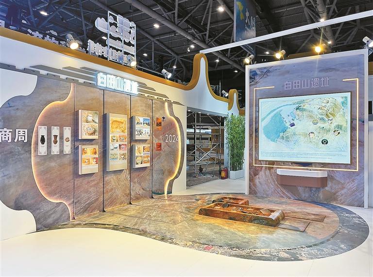 深汕特别合作区展区分为红色文化区、白田山遗址、工业区及洽谈区等分区。走进展区,右侧一眼看到的便是白田山遗址。去年11月,深汕特别合作区白田山遗址发现商周古墓,这个消息为世人瞩目。