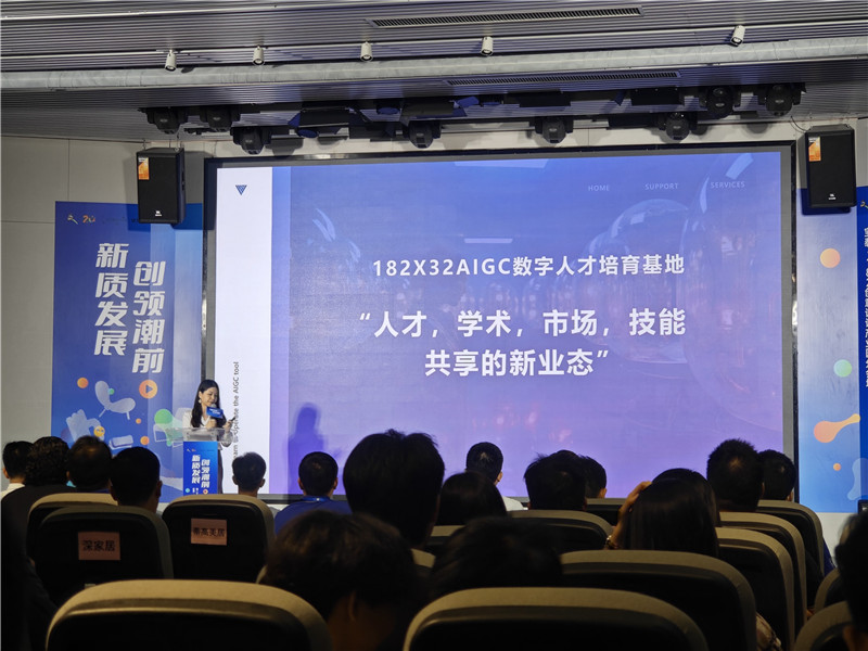现场还邀请了深圳市文化产业专家库专家、深圳三二数字内容联合创始人施晴曼作分享。她表示,将与182MIXA潮漫空间共建AIGC数字人才培育基地,培养新一代高素质复合型AI人才,共同推动AIGC技术应用和人才发展。此次文博会上也打造了“AI不是触不可及”AIGC数字文创画廊,呈现AI技术在各个领域的应用潜力和创意作品。