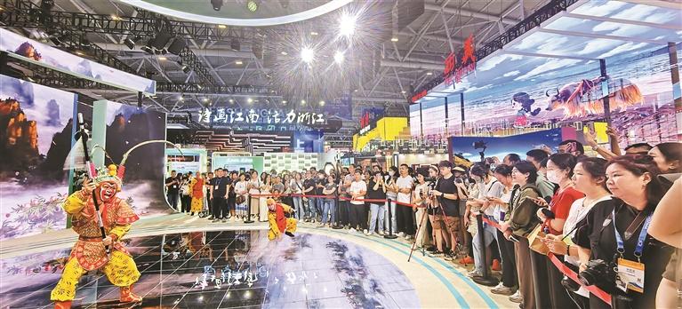 景德镇手工制瓷技艺,传承人通过1:1打造的“镇窑”,向观众展示传统制瓷工艺流程;西湖绸伞制作技艺传承人,着力讲述绸伞伞骨的奥妙——创造性地将伞骨分劈成篾青,篾黄两层,以供夹放伞面,这一创意开创了西湖绸伞造型工艺的基本结构;去年火爆全场的时光印记印刷博物馆再次参展文博会,通过打造非遗文化体验空间,展示活字印刷非遗文化,让人流连忘返。