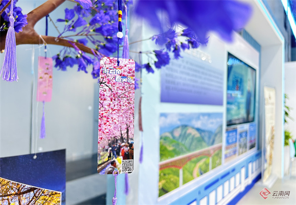 同时,在“游云南看吴哥”展域,蓝花楹造景为这一区域增添了一抹梦幻色彩。蓝紫色的枝头上,悬挂着一张张“游云南看吴哥”的主题书签,逛展观众纷纷拿出手机拍照打卡,扫描书签上的二维码获取详细的游玩攻略。此外,文博会期间云南展区还将送出包括云南鲜花、“游云南看吴哥”主题精美书签等万份“限定版”浪漫好礼。