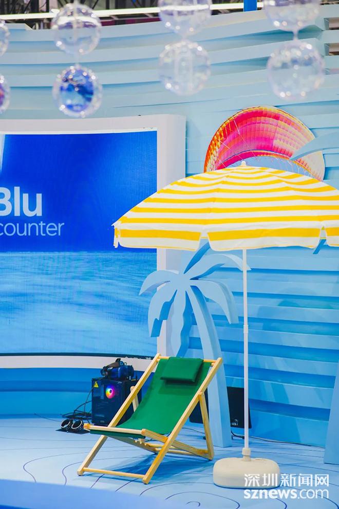 小梅沙展区以深海蓝与砂砾白为主基调,融合山海艺术的等高线“曲线”与弯折海岸线“弧形”元素,加之镜面波纹材料的海洋水纹吊顶设计,营造出简约而不失雅致的山海氛围。与此同时,小梅沙海洋世界鹦鹉螺设计理念、全球最大青蓝洞景观,深圳美高梅酒店以及“地铁直达沙滩”等片区亮点元素,也在展区设计中一一呈现。