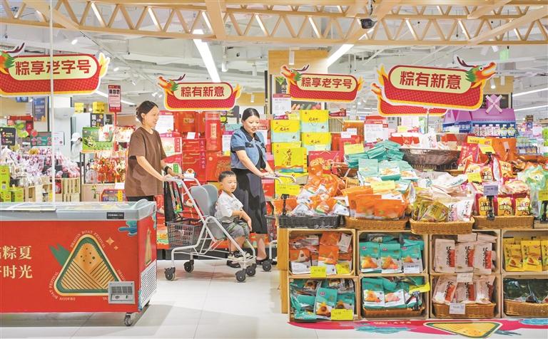 深圳新闻网2024年6月7日讯(深圳特区报记者 吴亚男)端午临近,粽叶飘香,消费市场“节味”浓郁。记者6月6日走访深圳各大商超看到,粽子、酒水饮料等各种充满节日特色的商品被摆放在显眼位置,方便市民选购。多位商家透露,进入6月以来,端午消费市场持续升温,各类应节商品销量均出现不同程度的增长。